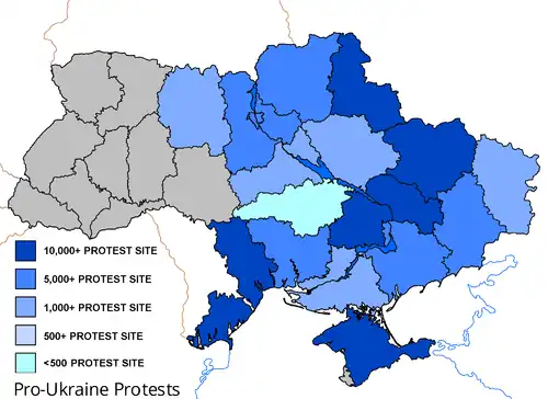 - ↑ (en) « Pro-Ukraine demonstrations held in Luhansk, Odesa, and Kryvyy Rih », sur euromaidanpr.com, .