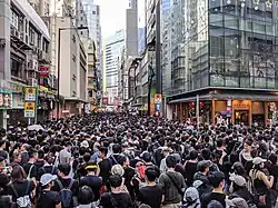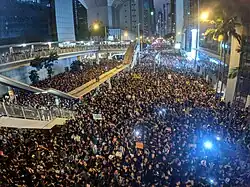 Le mouvement contre l'amendement de la loi d'extradition par le gouvernement de Hong Kong (en anglais : Anti-Extradition Bill Protests ; en chinois traditionnel : 反對逃犯條例修訂草案遊行與示威, familièrement 反送中[4]運動) est une série de manifestations à Hong Kong qui a duré de mars 2019 à mai 2020, et dans plusieurs autres villes autour du monde dans lesquelles on retrouve une diaspora hongkongaise. Les manifestants demandaient le retrait de l'amendement car ils considèrent qu'il permettra à la Chine continentale d'intervenir dans le système juridique indépendant, menaçant le particularisme légal de la région ainsi que la sécurité personnelle des habitants et de toutes les personnes passant par Hong Kong. En plus des manifestations locales, les communautés de la diaspora ont organisé des rassemblements et des manifestations de solidarité. Le mouvement se revendiquait sans leader et dépourvu d'organisateur centralisé. Les citoyens hongkongais communiquaient et organisaient les manifestations en utilisant notamment le forum LIHKG et l'application Telegram.