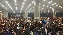 Demosistō organise un sit-in au complexe du gouvernement central le . Il s'agissait de la première manifestation contre la loi d'extradition. À la fin du sit in, 9 personnes sont arrêtées par la police. C'est la première fois depuis le début du mouvement.