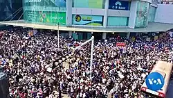 - ↑ (en) « Protesters create gridlock in Yangon amid fears of violence », sur www.aljazeera.com (consulté le )