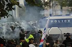 Les manifestants affrontant la police anti-émeute le 7 novembre 2007.
