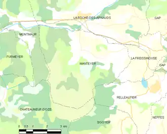 - ↑ « Orthodromie entre Manteyer et Gap », sur fr.distance.to (consulté le ).