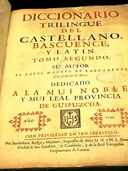 - Diccionario Trilingüe del Castellano, Bascuence, Latin (1745).