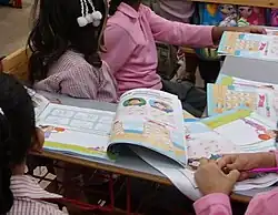 Utilisation d'un manuel scolaire dans une école primaire égyptienne, en 2018.