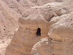 Une des grottes dans lesquelles les manuscrits ont été trouvés. La nature et l'emplacement de grottes inaccessibles près du site (pris par les Romains en 68-70) a décidé de leur choix pour les déposer[Note 1].