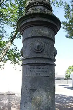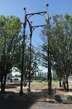 Quatre colonnes de réemploi, aux Courlis, provenant de l'ancien marché Saint-Arigle