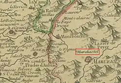 Une autre hypothèse est avancée par M. Ajasse, instituteur à Rieutort d'Aubrac, ayant réalisé une étude communale en 1874[34]; le nom viendrai de "Mars", dieu romain auquel un culte était rendu au sommet de la butte volcanique, et de "Chastel", pour le château siégeant alors en ce sommet.