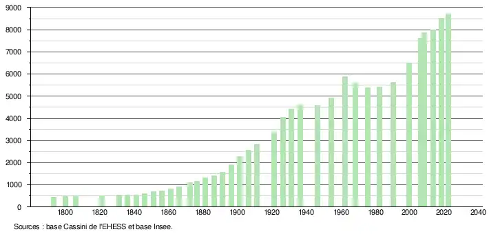 - ↑ Population municipale de référence en vigueur au 1er janvier 2025, millésimée 2022, définie dans les limites territoriales en vigueur au 1er janvier 2024, date de référence statistique : 1er janvier 2022.