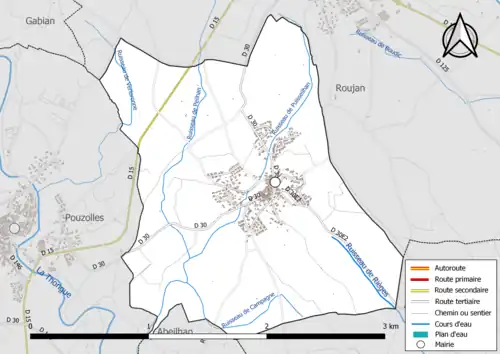 Les communes limitrophes sont Abeilhan, Alignan-du-Vent, Pouzolles et Roujan.