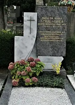- ↑ (de) « Die Bestattung Wien gibt im Namen der Angehörigen bekannt: Fr. Dr. Maria Schaumayer verstorben », sur OTS.at (consulté le )