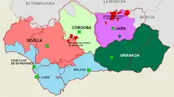 Carte des Nuevas Poblaciones de Andalucía y Sierra Morena.