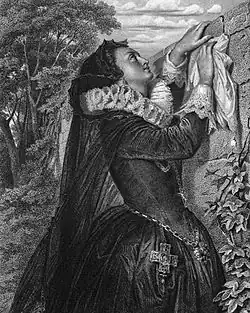 Marie Stuart est emprisonnée au château de Fotheringhay en Angleterre non seulement pour avoir prétendument tenté d’assassiner son mari Lord Darnley, mais aussi et surtout à cause de sa revendication au trône d'Angleterre qu'occupe sa cousine la reine Élisabeth Ire, ce qui a sans doute dissuadé cette dernière de l’emprisonner. Elle hésite à la condamner à mort mais préfère l'envoyer finalement en prison en Espagne, où elle rendra visite à ses cousins.