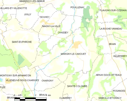 - ↑ « Orthodromie entre Marigny-le-Cahouët et Semur-en-Auxois », sur fr.distance.to (consulté le ).