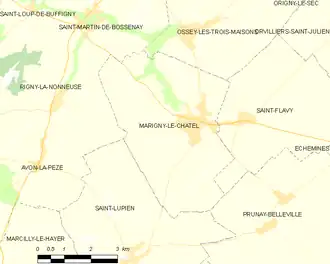 Le village de Marigny-le-Châtel est entouré de sept communes :