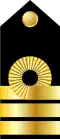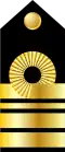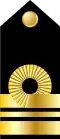 Amiral Vice-amiral Contre-amiral Commodore Capitaine de vaisseau Capitaine de frégate Capitaine de corvette[16] Lieutenant de vaisseau Enseigne de vaisseau de 1re classe Enseigne de vaisseau de 2e classe[17]
