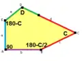 ![]() 2a + c = d = e A = 90°, 2B + C = 360° C + E = 180° |