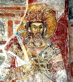 Vukašin, le père de Marko, sur une fresque de l'église de Psača, en Macédoine du Nord.