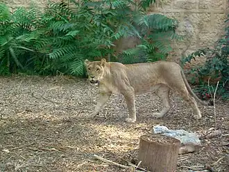 | Caractéristiques | Lion de petite taille doté d'un pellage tacheté et de mœurs forestières. |