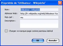 Propriété d'un marque-page du logiciel Mozilla Firefox.
