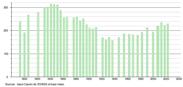 - ↑ Fiches Insee - Populations de référence de la commune pour les années 2006, 2007, 2008, 2009, 2010, 2011, 2012, 2013, 2014, 2015, 2016, 2017, 2018, 2019, 2020, 2021 et 2022.