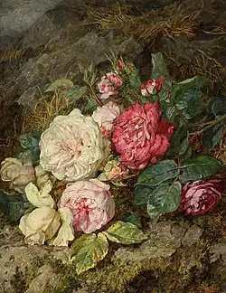 Martha Darley Mutrie, Roses, huile sur toile. Galerie d'art et musée Russell-Cotes ; présenté par Sir Merton Russell-Cotes, 1921.