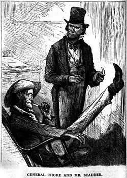 - ↑ Charles Dickens (trad. Alfred des Essarts), Vie et aventures de Martin Chuzzlewit, Paris, Hachette, , p. 83.