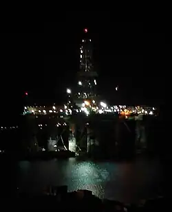 Plate-forme pétrolière amarrée à Mortier Bay.