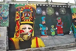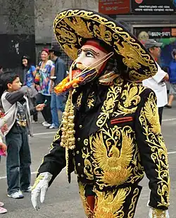 D'autres danseurs avec des personnages plus âgés comprennent la version des Mixtèques à Cuilapan de Guerrero (en), Oaxaca. Celle-ci est dansée en juillet et en août, la danseuse principale se distinguant par un masque au nez exceptionnellement long[58]. Dans la danse pascola du nord-ouest du Mexique, l'un des personnages est appelé « le vieil homme du festival ». Toutefois, le masque de ce personnage peut avoir un visage humain ou des traits d'animaux tels que ceux du singe ou du bouc[59].