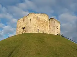, sur english-heritage.org.uk (consulté le ). - 1 2 (en) BBC Yorkshire, « York: Clifford's Tower to stage first Jewish ceremony since massacre », BBC, (lire en ligne