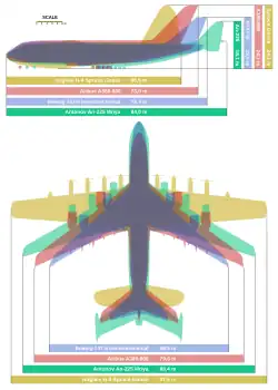 L'avion de transport Antonov An-225 Mriya avait un MTOW de 640 t[5] ; il était le plus gros avion en 2022[6].