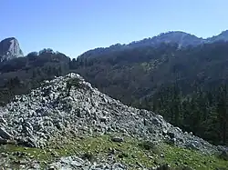 La végétation est composée de prés d'altitude, de Chêne vert et d'Aubépines monogyne qui se développent sur le calcaire, tandis que dans les parties plus basses se trouvent des forêts de hêtres et chênes qui se partagent le terrain avec le Pin de Monterey.