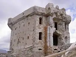À la fin de la Seconde Guerre mondiale, en , le massif est défendu par la 34e DI allemande et des troupes de montagne retranchées dans un réseau de fortifications sur une série de buttes : le fort de la Forca (2 078 m), la redoute des Trois-Communes (2 080 m bâtie sur un sommet situé à la limite des communes de Breil-sur-Roya, Saorge et La Bollène-Vésubie), l'ouvrage de Plan-Caval (1 932 m) et le fort de Mille Fourches (2 042 m). Du 10 au , les unités de la 1re division française libre (DFL) lancent l'assaut sur les positions allemandes par le sud. Après des combats difficiles, le fort de Mille Fourches tombe le , suivi du fort de la Forca et de l'ouvrage de Plan-Caval. Le , enfin, la redoute des Trois-Communes est prise d'assaut par un char soutenu par cinq soldats volontaires. L’ensemble du front allemand s’effondre le .