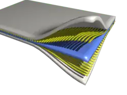 - Voigt et Reuss : les cas extrêmes de ces inégalités sont atteignables par des géométries de couches empilées. D'ailleurs, on retrouve ici un résultat constant de la physique : la résistance électrique d'un assemblage de résistances est la somme des résistances lorsqu'elles sont en série, ou est l'inverse de la somme des inverses quand elles sont en parallèle (résultat similaire également avec un assemblage de ressorts). La différence est qu'ici la loi de comportement n'est pas décrite par un scalaire (comme c'est le cas pour une résistance électrique ou une raideur de ressort), mais par une grandeur multidimensionnelle (le tenseur d'ordre 4). Note : ici[Quoi ?] désigne la moyenne de[Quoi ?] sur tout le volume du composite ; et l'inégalité entre tenseurs s'entend au sens où pour tout tenseur on a[Quoi ?] ;