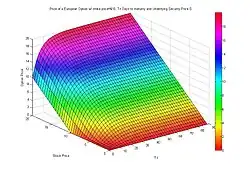 où est le cours de l'actif, est le prix d'exercice (ou Strike), est le taux d'intérêt instantané sans risque à la date s, est la date « d'aujourd'hui », est la maturité de l'option, c’est-à-dire la date à laquelle la décision d'exercice peut être prise.
