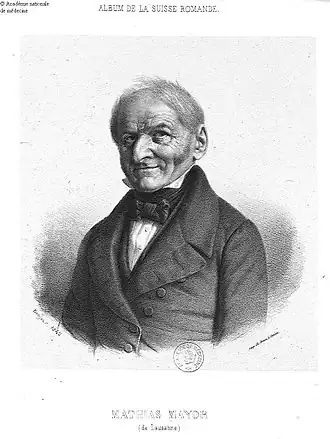 - ↑ Jean-Marie-Placide Munaret, Notice sur Mathias Mayor: sa vie et ses travaux, Paris, Germer-Baillière, , 104 p. (lire en ligne sur Gallica)