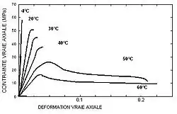 - module d'élasticité plus faible (le module du PEBD est peu élevé : E~200 MPa ; à l'opposé, les aminoplastes présentent un module très élevé). Une incorporation croissante de fibres augmente le module d'élasticité et la contrainte à la rupture (ténacité) du composite. La dilatation thermique des matériaux est inversement proportionnelle à leur module de traction. Le coefficient de dilatation des polymères thermoplastiques est supérieur à celui des métaux ;