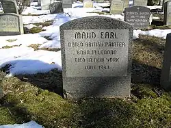 Maud Earl décède à New York en 1943 et est inhumée au cimetière de Sleepy Hollow à Sleepy Hollow à New York[11].