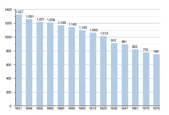 - Sources : INS, Rem. : 1831 jusqu'en 1970 = recensements, 1976 = nombre d'habitants au 31 décembre.