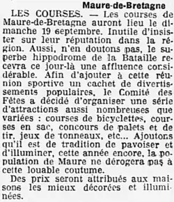 Des courses étaient organisées chaque année à Maure-de-Bretagne, notamment des courses hippiques sur l'hippodrome de la Bataille.