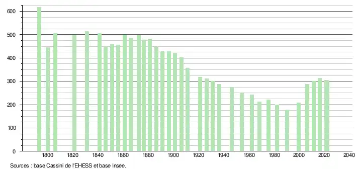 - ↑ Population municipale de référence en vigueur au 1er janvier 2025, millésimée 2022, définie dans les limites territoriales en vigueur au 1er janvier 2024, date de référence statistique : 1er janvier 2022.