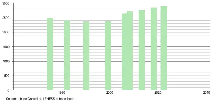 L'évolution du nombre d'habitants est connue à travers les recensements de la population effectués dans la commune depuis 1975. Pour les communes de moins de 10 000 habitants, une enquête de recensement portant sur toute la population est réalisée tous les cinq ans, les populations de référence des années intermédiaires étant quant à elles estimées par interpolation ou extrapolation[30]. Pour la commune, le premier recensement exhaustif entrant dans le cadre du nouveau dispositif a été réalisé en 2008[31].
