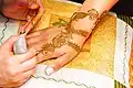 Mehndi en cours d'apposition.
