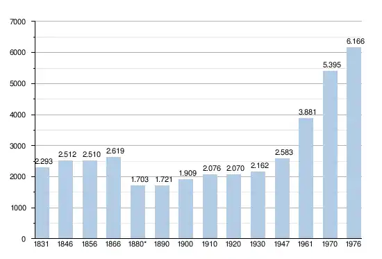 - Source : DGS, de 1831 à 1981 = recensements population ; à partir de 1990 = nombre d'habitants chaque 1er janvier.[17]