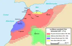 Carte du Maghreb al-Aqsa à l'époque idrisside, dont l'émirat de Sijilmassa.