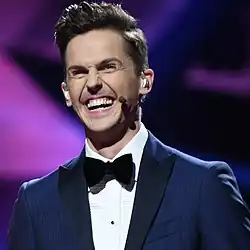 - ↑ (sv) « Nu är det klart vem som ska leda Melodifestivalen »(Archive.org • Wikiwix • Archive.is • Google • Que faire ?), sur svt.se, (consulté le ).