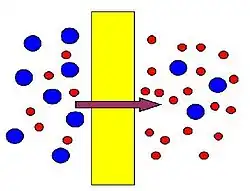 Une membrane est une couche de matériau servant de filtre entre deux phases, imperméable à certaines particules, molécules ou substances dans certaines conditions. Certains composants peuvent traverser la membrane par le flux d'imprégnation, tandis que d'autres ne passent pas et s'accumulent dans le flux de retenue[1].