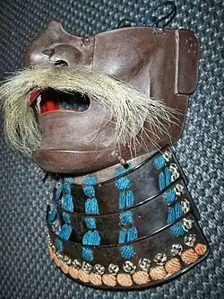 Souvent laqués, ces masques pouvaient représenter entre autres des visages de démons et des visages de kamis pouvant effrayer les ennemis.