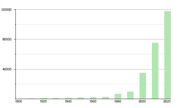| 2000 | 34 919 | ▲ +263,89 % | |