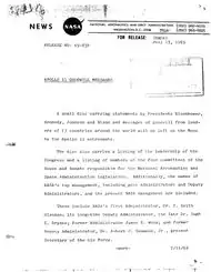 - (en) NASA, « Apollo 11 Goodwill Messages », communiqué de presse no 69-83F, Document ID : 19690023536, Accession Number : 69N32914, sur ntrs.nasa.gov, [lire sur Wikisource].