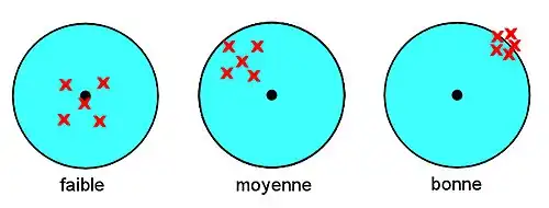 Remarque : À la différence de l'exactitude et de la justesse, la fidélité s'exprime numériquement. Elle peut être exprimée par l'écart-type de la dispersion des mesures considérées.